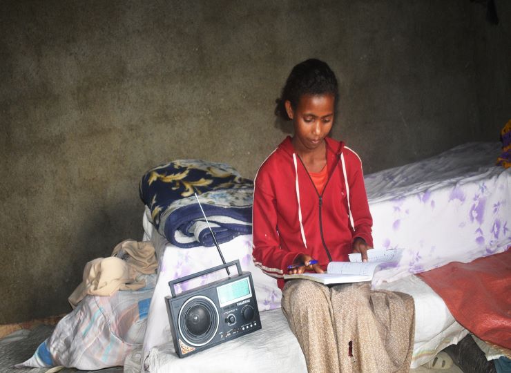 Tigist, 14, of Ethiopia was able to tune into classes using the solar-power radio provided by SOS Children's Villages in Ethiopia.