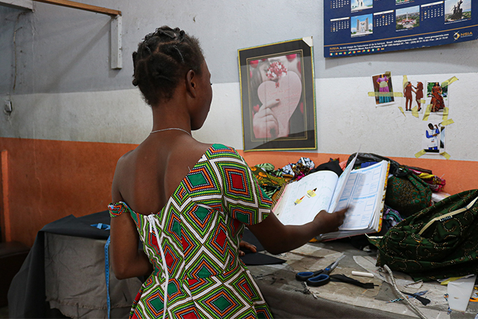 With the financial support of SOS Children’s Villages, Amy was accepted for a three-year traineeship at a dressmaker’s shop in Abobo, and she was finally able to quit her job at Tantie Bagage at the market.
