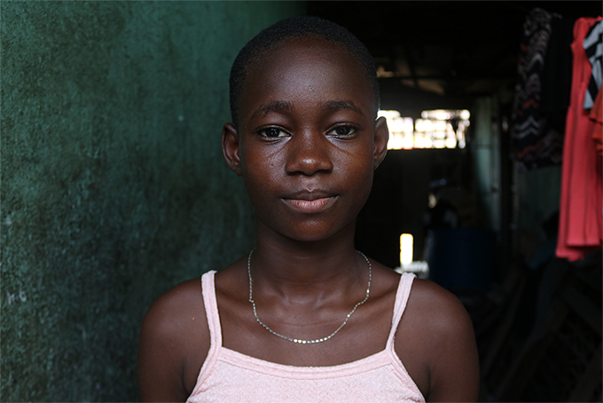 Grace*, comes from Abobo, one of Abidjan’s most underprivileged neighborhoods. She has a cheeky smile and deep eyes, which have seen much more than what one should expect from a 13 year old.