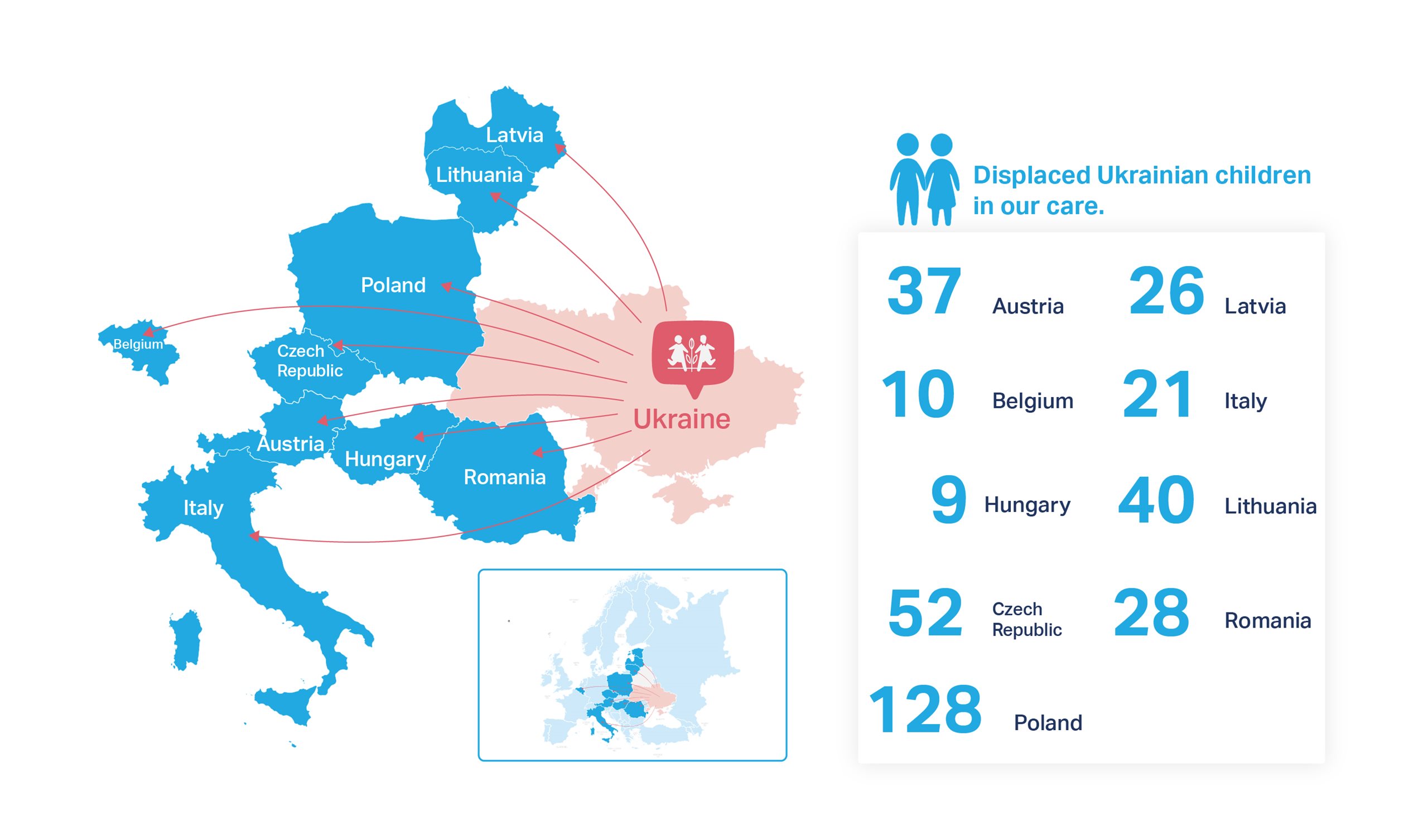 Children fleeing the conflict have also found temporary homes in SOS Children’s Villages programs in Austria, Belgium, Czech Republic, Hungary, Italy, Latvia, Lithuania and Romania.